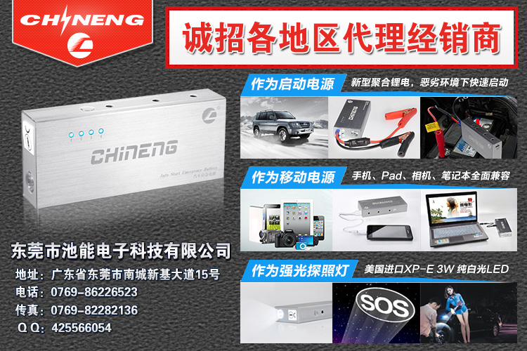 公司最新研制出的實用多功能產品——汽車應急啟動電源,汽車啟動,移動設備充電,強光手電筒三功能合一設計,采用美國進口芯片和高倍率聚合物鋰電池,充放電性能出眾;鋁合金一 體機身的設計更是集實用美觀于一體,既堅固耐用有效保護電池和內部電路,又體現出低調奢華的尊貴品質。